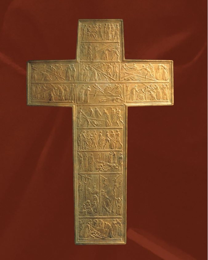 Nell'ombra della 'Croce della passione' di Venanzo Crocetti si intravede la luce della speranza.